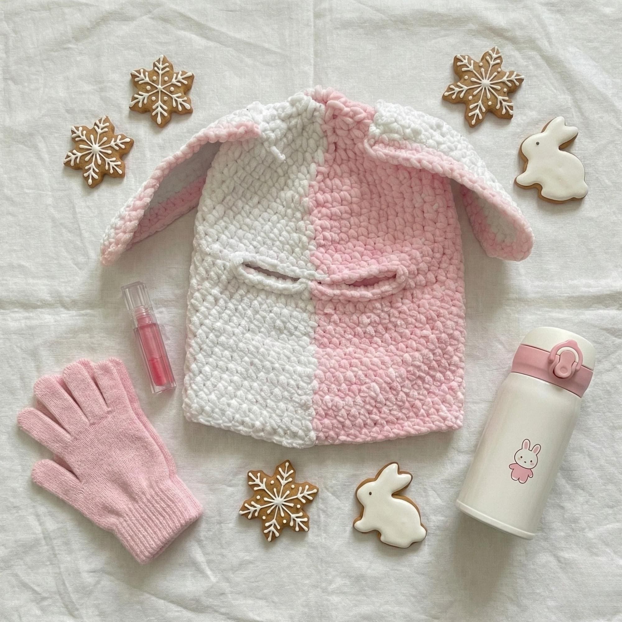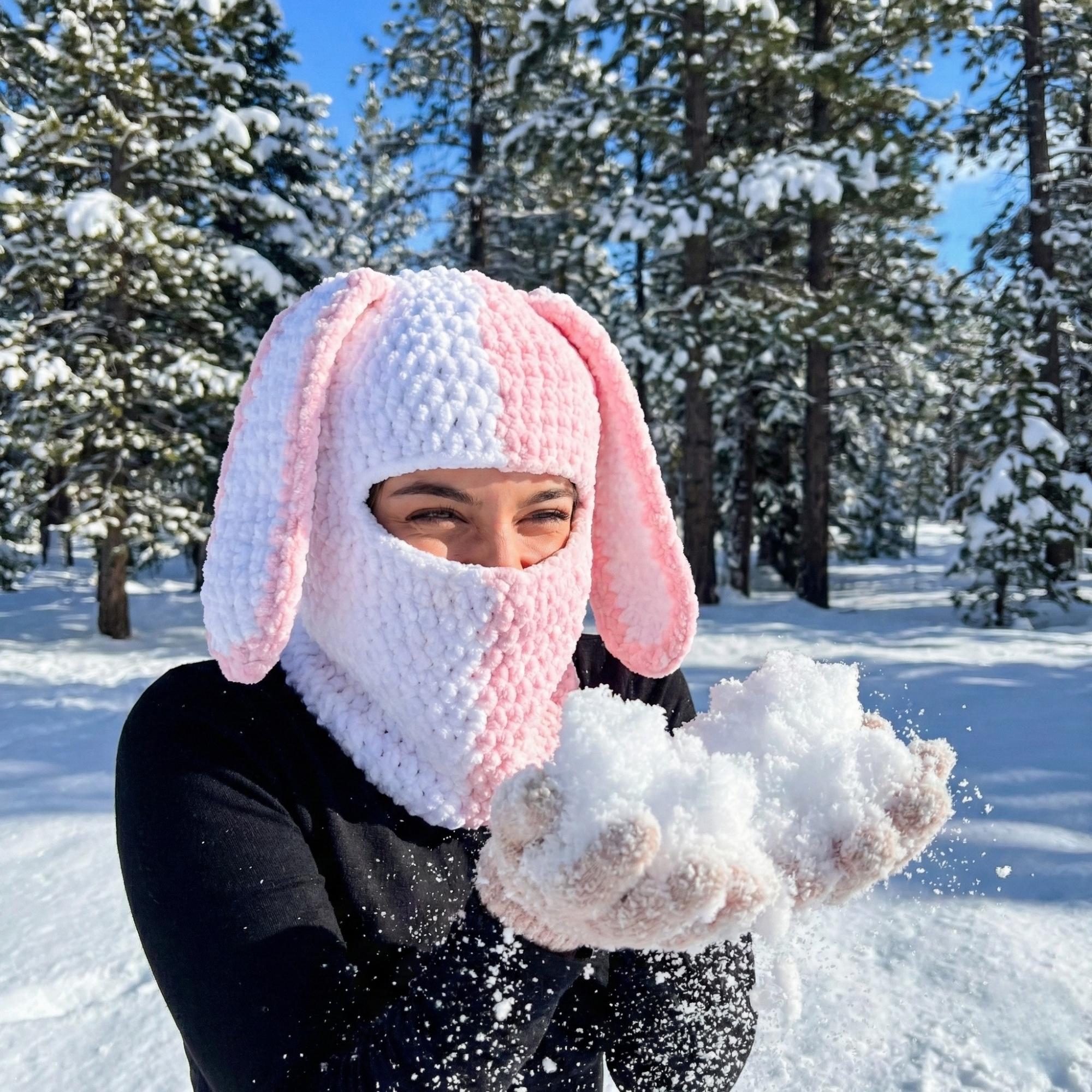 This Pink & White Bunny Balaclava is handcrafted with ultra-soft "Velvet Chenille Yarn," making it feel like a warm hug on your face. Whether you are a streamer, a gamer girl, or just love the Y2K aesthetic, this fluffy bunny mask is the perfect statement piece.